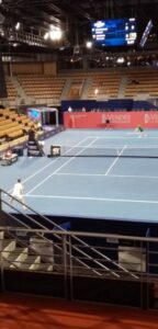 2/ Après notre pique nique, nous sommes allés encourager le français Clément CHIDEKH, qui s’est qualifié, pour aller le lendemain en demi finale ! Mais attention au service et parfois au double faute !